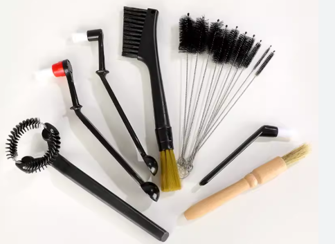 Your basic cleaning kit needs three things. First, a backflush “blind” basket (a basket with no holes). Second, espresso machine cleaning powder like Cafiza or similar products. Third, a group head brush. Use the brush for daily cleaning to scrub the shower screen. Use the powder and blind basket for weekly “backflush” chemical cleaning.